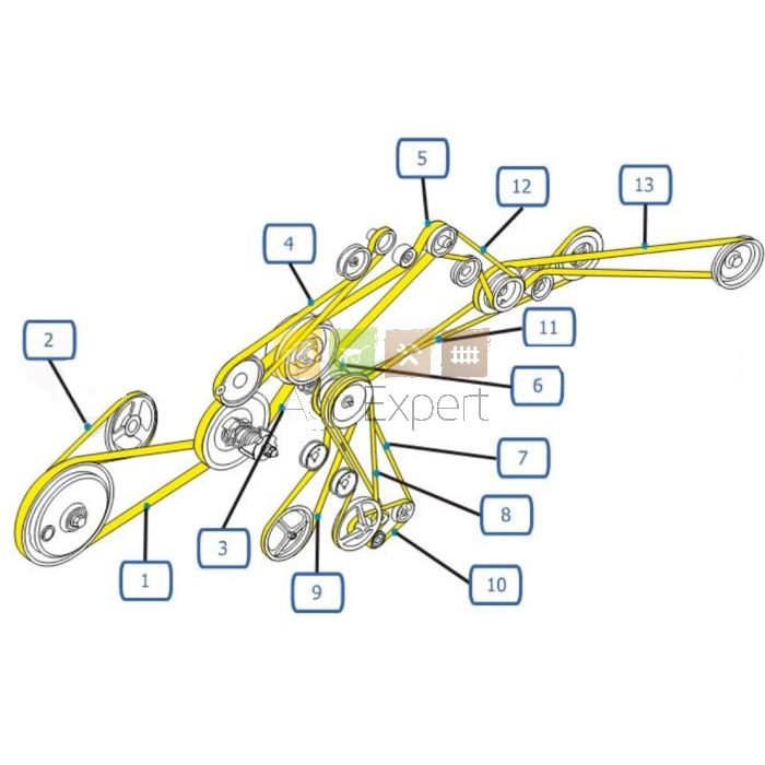 Courroie de broyeur sortie moteur MB New-Holland CR 6090, 7090, 8080, 8090, 9060, 9070, 9080, 9090, CX 720, 740, 760, 820, 840, 860, 880, 84075345 Claas, Deutz Topliner 01145330