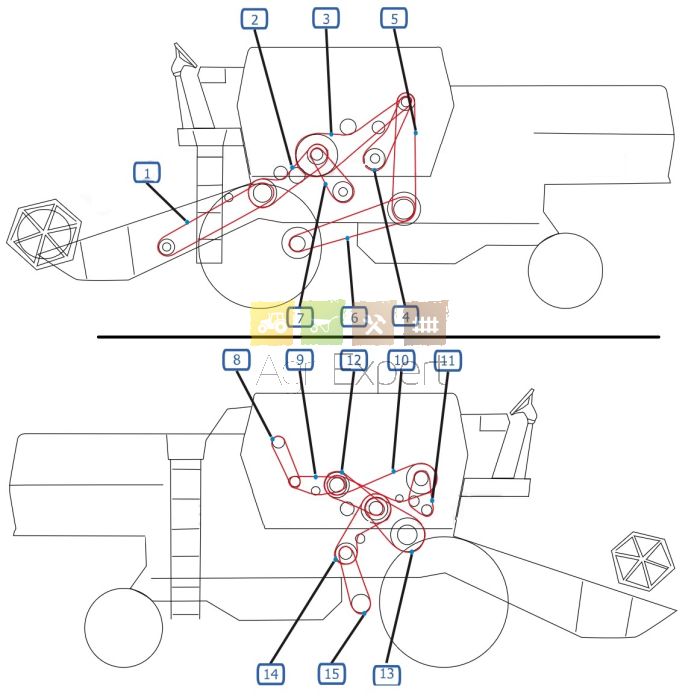 Courroie pompe rabatteur convoyeur 54,5 pouces (L=1990mm) moissonneuse batteuse Case IH Axial Flow 1640, 1660E, 1680, 1680E (N°12)