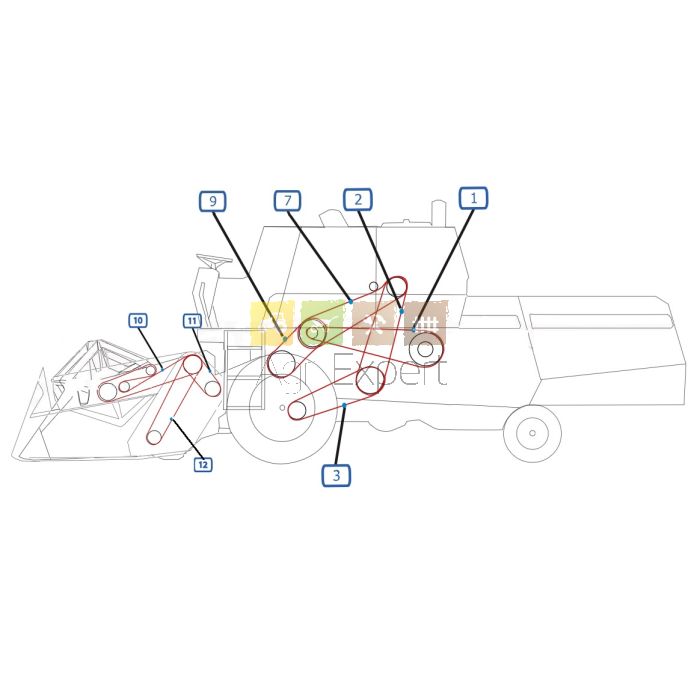 Courroie du variateur avancement Moissonneuse batteuse Massey-Ferguson MF 300, 487, 506, 507, 540, 750, 850, 855, inférieur