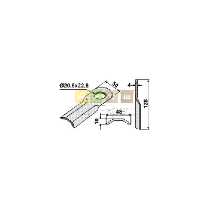 Couteau bombé pour faucheuse Kuhn, Taarup, Agram 128 x 50 - trou Ø20,5 x 22,8 - Épaisseur 4 mm ( tuile )
