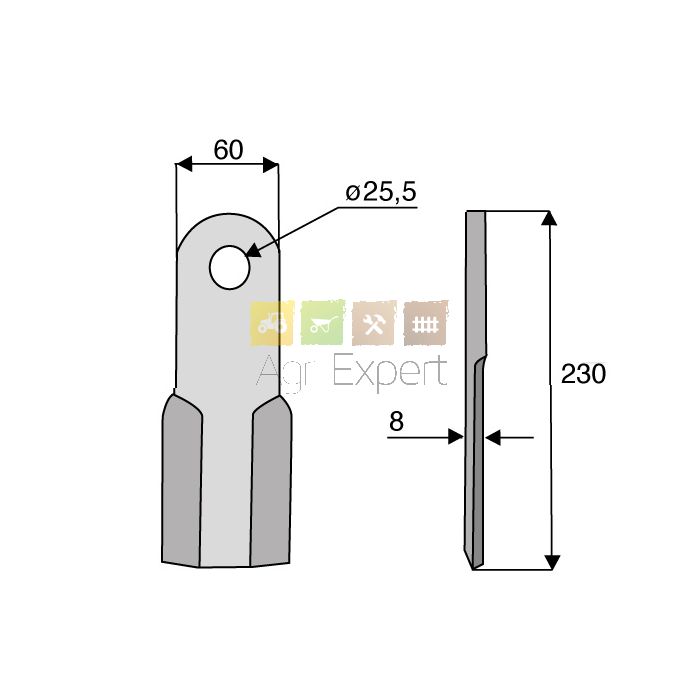 Couteau droit 60x8x230 D25.5 broyeur Riviérre Casalis, Ferri