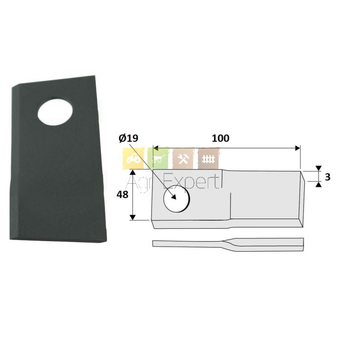 Couteaux pour faucheuse Claas, Pöttinger, Niemeyer, 100x48x3 trou Ø19 vrillé droite 570.414, 434.984, 9041777