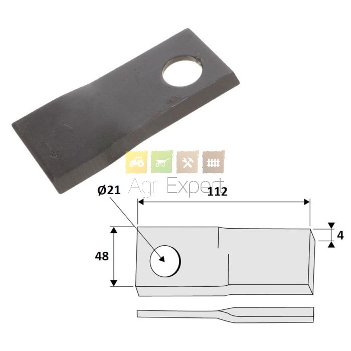 Couteaux pour faucheuse Pöttinger Novacat, Novaalpin, Novadisc 112x48x4 trou Ø21 vrillé gauche 434.969