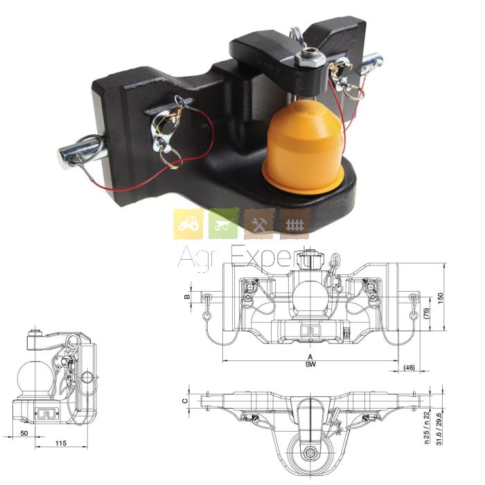 Crochet Attache coulissante Rockinger K80 tracteur Deutz-Farh Agrotron TTV, Fendt 700, 800, 900, 1000, Case IH Magnum, MX, Puma, Puma CVX, New-Holland T7, T8, T7000, T8000