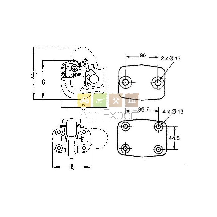 Crochet fixe fixation par 2 trous entraxe 90mm