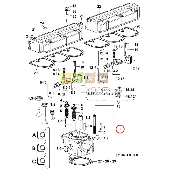 Culasse moteur moteur Same 1000.6W, 1000.6W1, 1000.6WT, 1000.6WT Com II, 1000.6WT3V, 1000.6WTI, 1000.6WTI3V, 1000.6WTIR