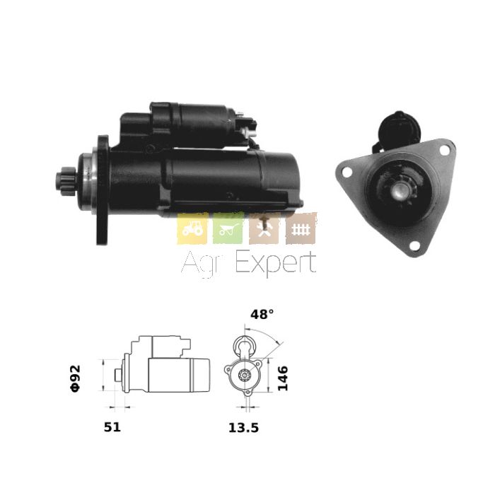 Démarreur avec réducteur fixation 3 x 146,0 x 13,5 mm