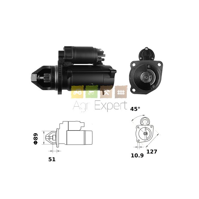 Démarreur Iskra moteur Case IH D206, D246, D239, DT239, D268, D310, D358,