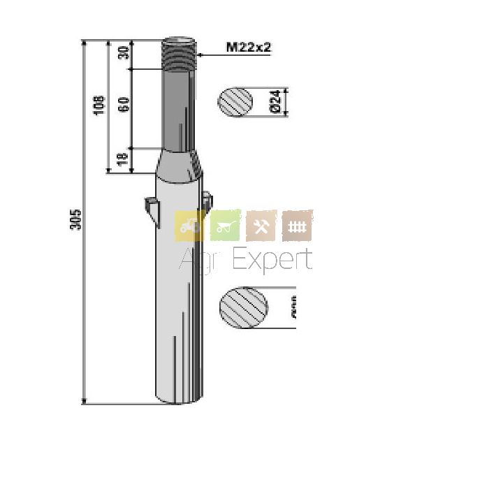 Dent cylindrique de herse rotative L305 D28 fil22x2 pour Agrator