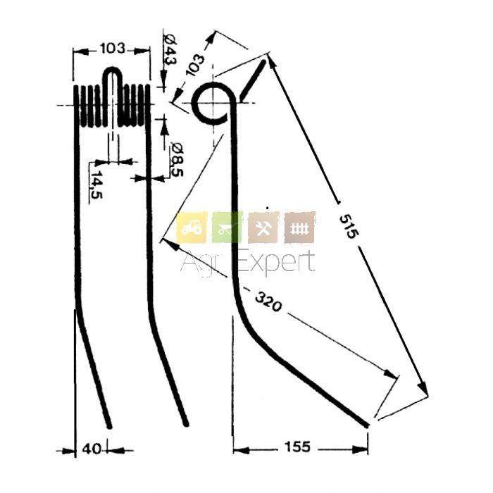 Dent d'andaineur Morra modèle court L515 mm à partir de 1986