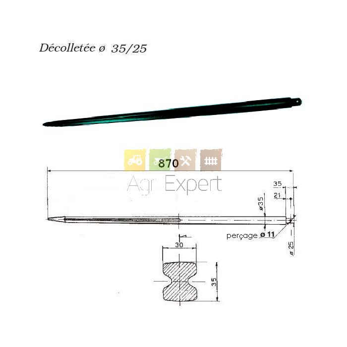 Dent de chargeur D35/25 L870mm percée type Mailleux, qualité premium