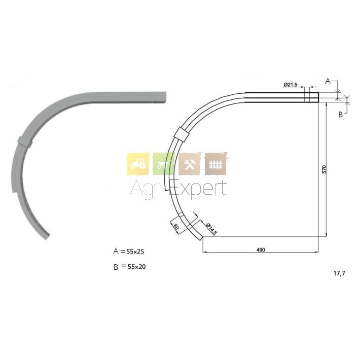 Dent de chisel bi-lames 55x25+55x20 H570 EA60