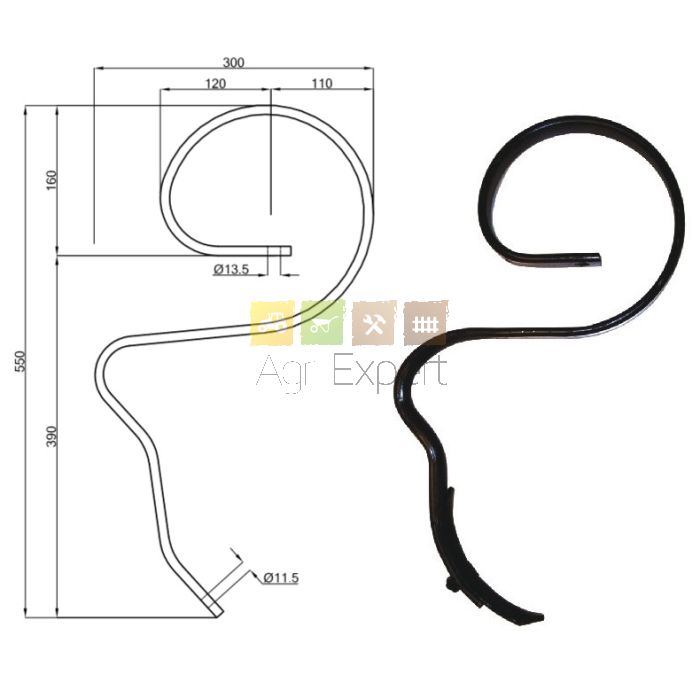 Dent de cultivateur Vibrex Rau Kverneland section 32x10 mm avec soc 35 x 5 x 180 mm