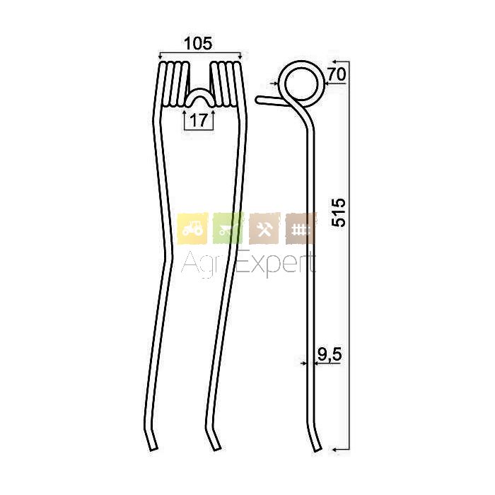 Dent de faneuse Kuhn GRS25N L515 D9,5mm 57644010 (à partir du N° de série 8000001)