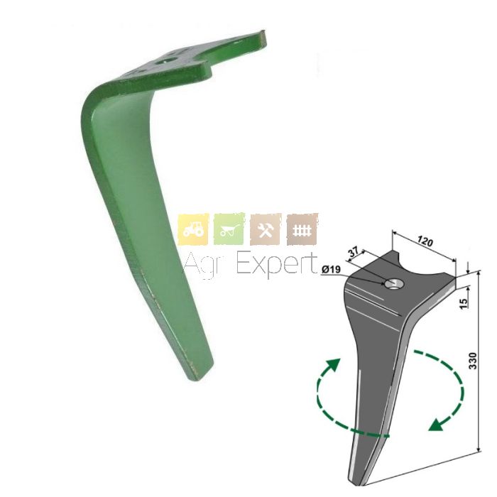 Dent droite herse rotative Amazone Cultimix, KG, KX, Cirrus - large SUPER GRIFF démontage rapide Origine AMAZONE 967495