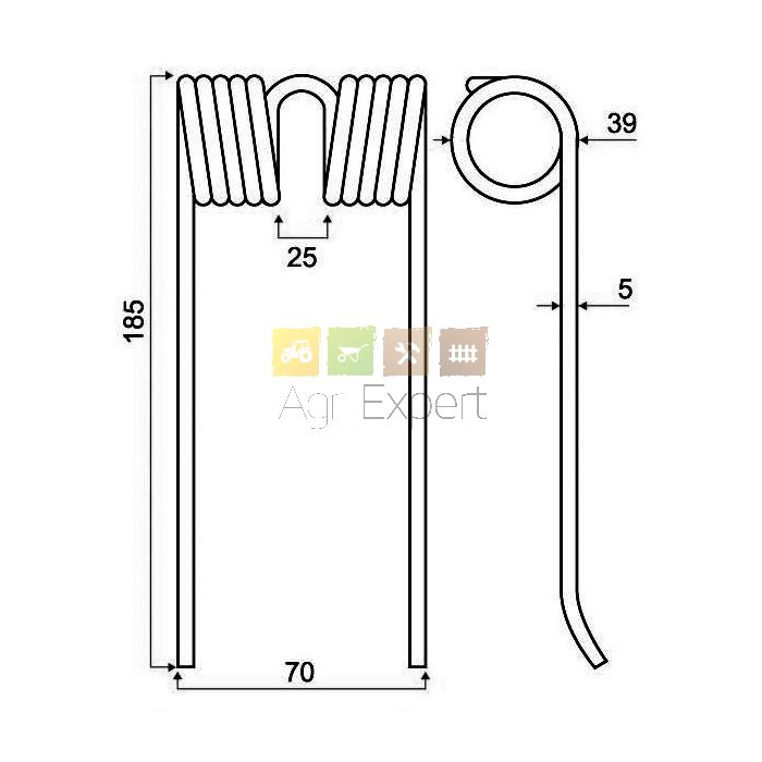 Dent de big-baller Rivierre-Casalis L185 Ø5mm pour type: presse MC8080, RC50, round-baller RC115, RC125