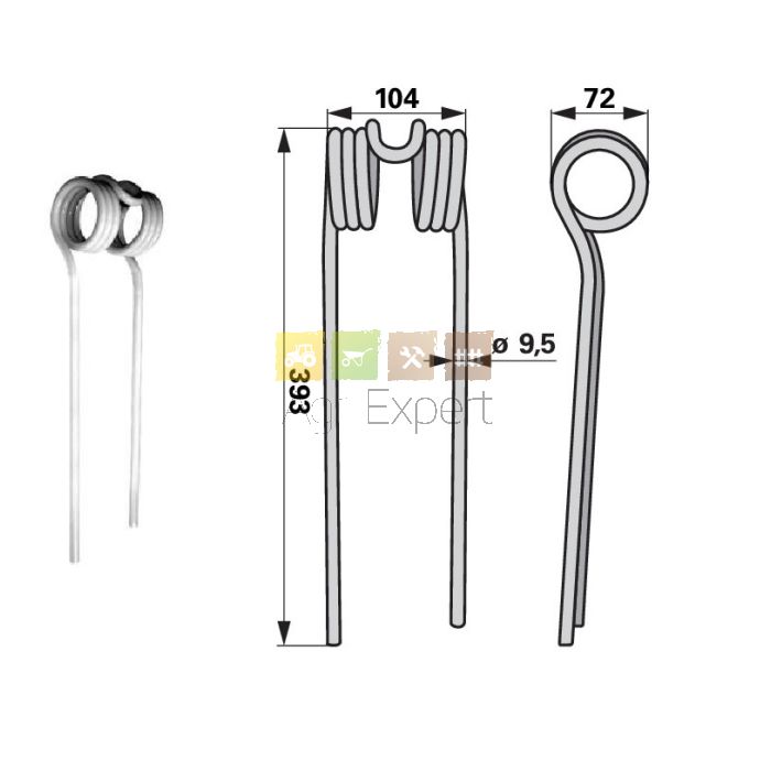 Dent droite pour faneuse Pöttinger Eurohit 54, 81, 91, 95, 105, 130, Alpinhit 6.6, 44, HIT 47, 54, 69, 80, 470, 540, 610, 690, 800, 810, 910