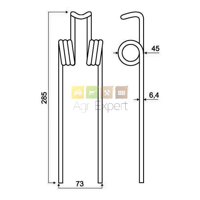 Dent pour râteau faneur L07 Someca L285 D6,4mm réf.: 44300413