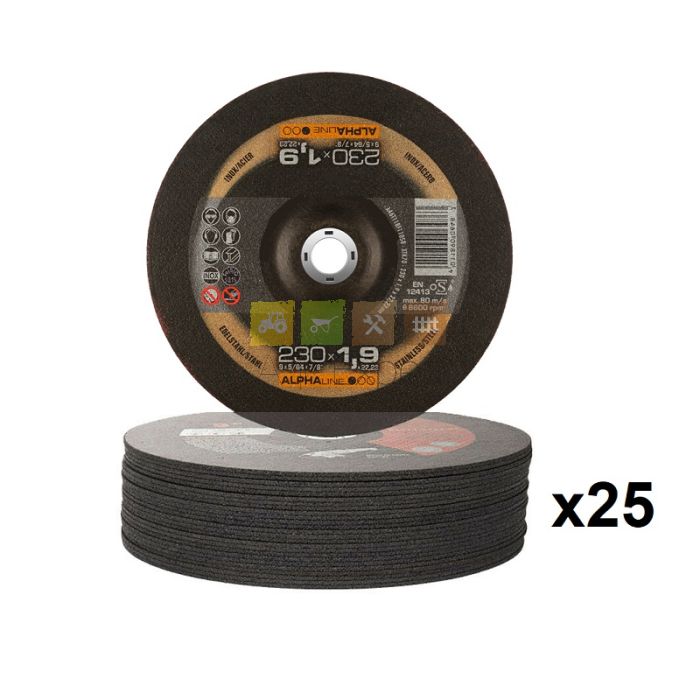 Disque à tronçonner fin 230x1.9x22.2 moyeu déporté pour Acier, Inox - lot de 25 pièces