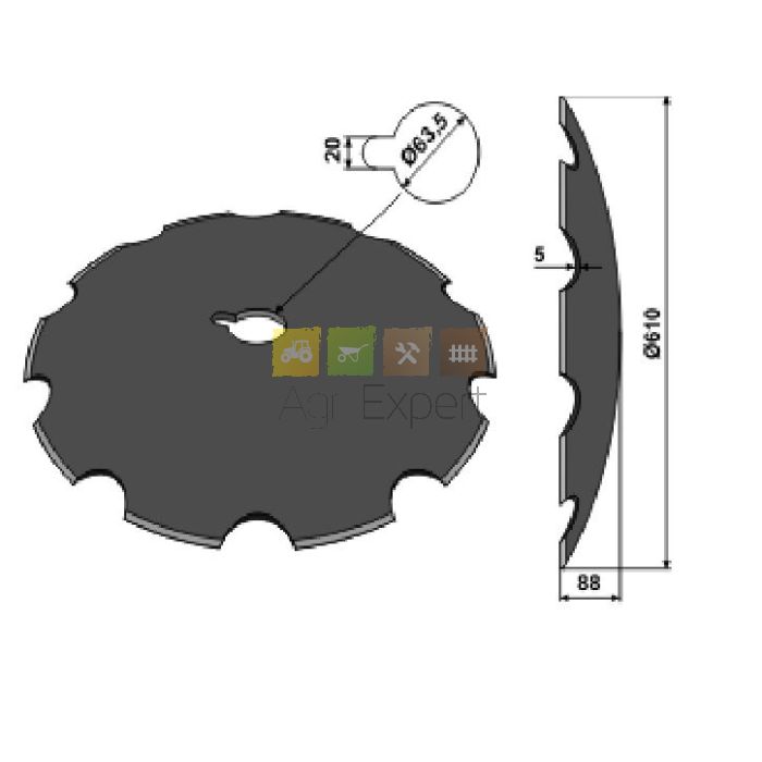 Disque de covercrop bombé crénelé D610x5 trou rond D63.5 ergot
