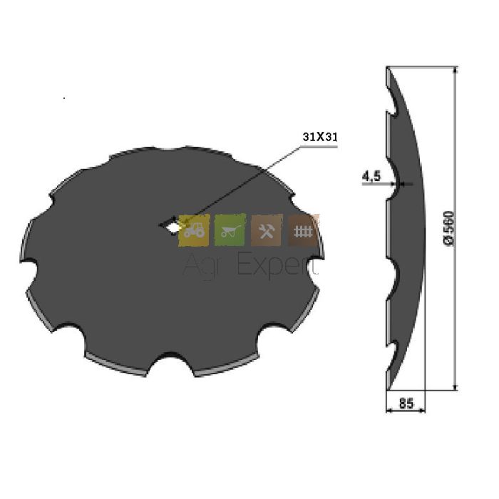 Disque de covercrop bombé crénelé diamètre 560x4.5 carré 33 mm