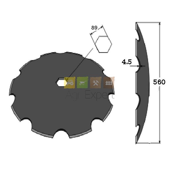 Disque de covercrop bombé crénelé diamètre 560x4.5 hexagonal 89 mm