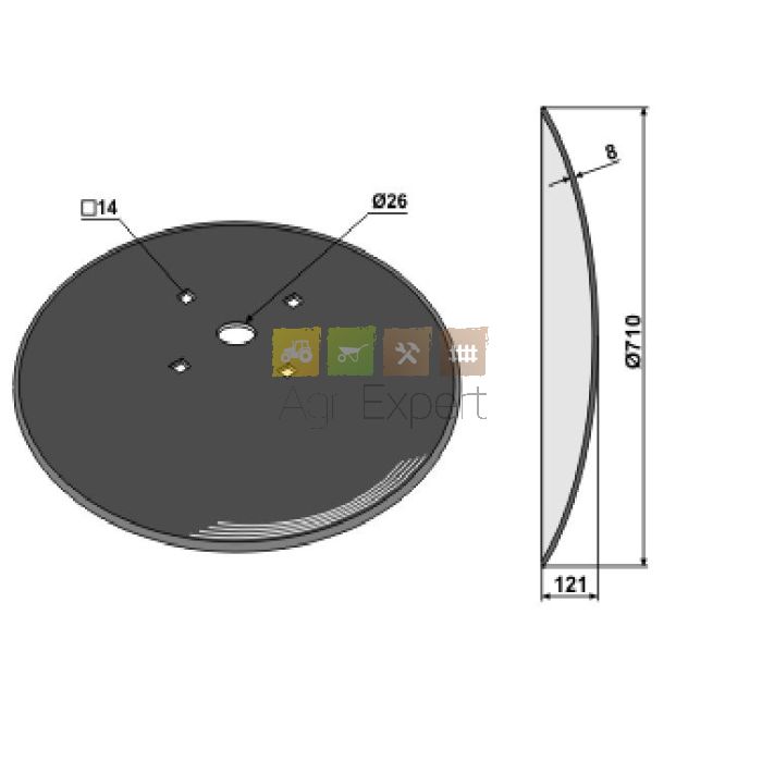Disque lisse diamètre 710x8 trou rond D26+4 trous EA165 D14 montage IH
