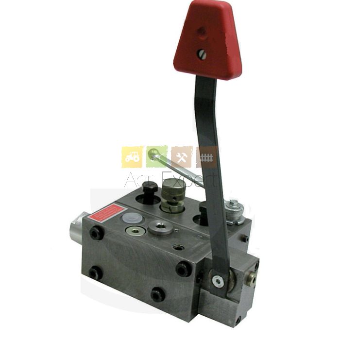 Ensemble Bloc de base avec distributeur 5/3 à tiroir, muni d'une soupape de limitation de pression et d'une vanne de dérivation vers le relevage ou un circuit externe, Raccord en M18x1,5 mm. Peut s'utiliser avec un distributeur supplémentaire.