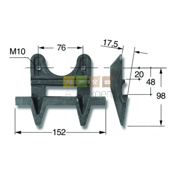 Double doigt 6" pour barre de coupe faucheuse John-Deere 486, New-Holland 444, 447