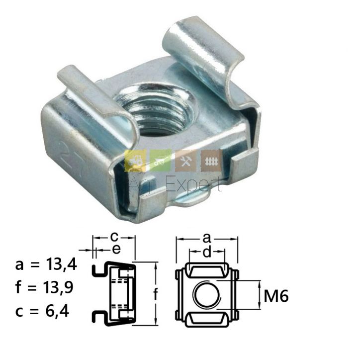 Ecrou prisonnier M5 application New-Holland, Fiat, Fiatagri, Renault, Claas, John-Deere, Fendt, Deutz-Fahr, Case IH, Ford, Laverda, Hesston.