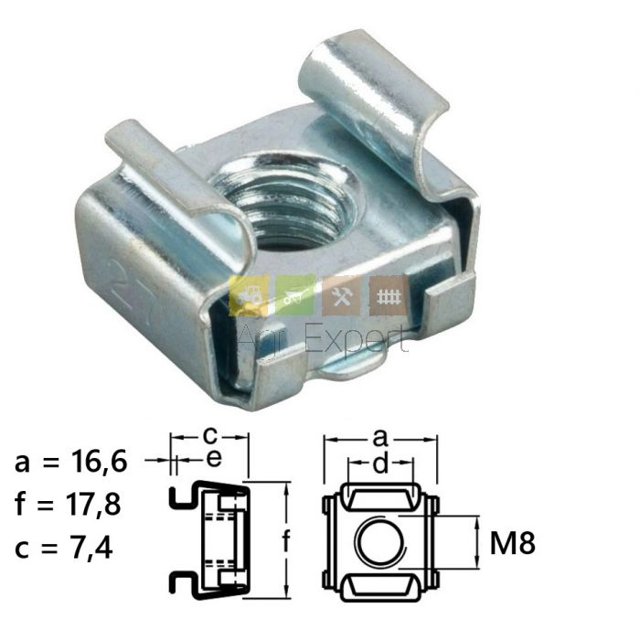 Ecrou prisonnier M8x125 application New-Holland, Fiat, Fiatagri, Renault, Claas, John-Deere, Fendt, Deutz-Fahr, Case IH, Ford, Laverda, Hesston.