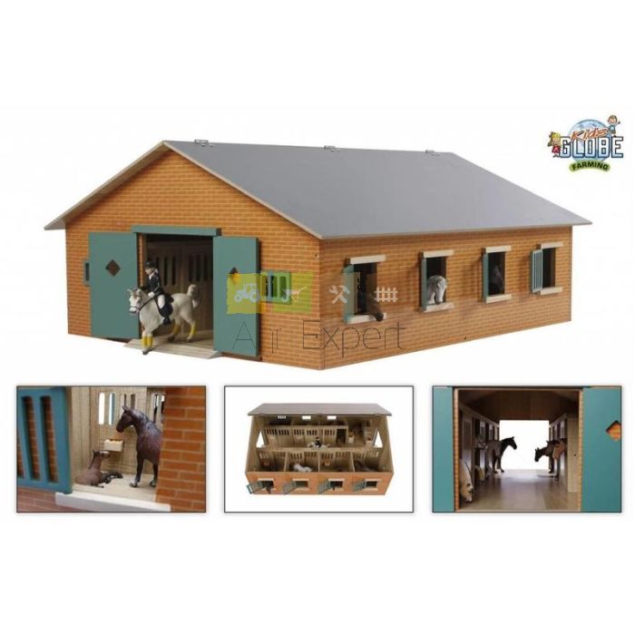 Ecurie avec 7 boxes ferme Kids Globe 1:32 dimensions 725x600x375 mm