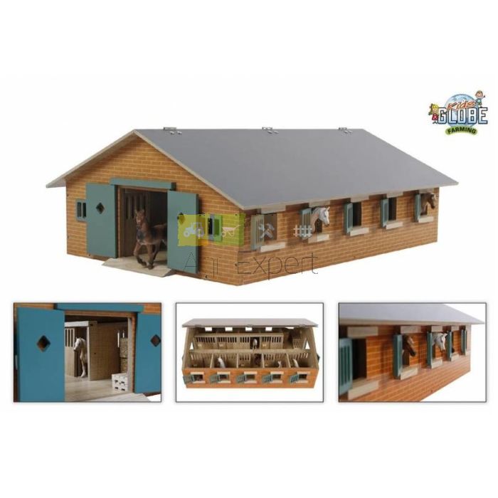 Écurie, en bois avec 10 boxes 1:32 dimensions 620 x 425 x 220