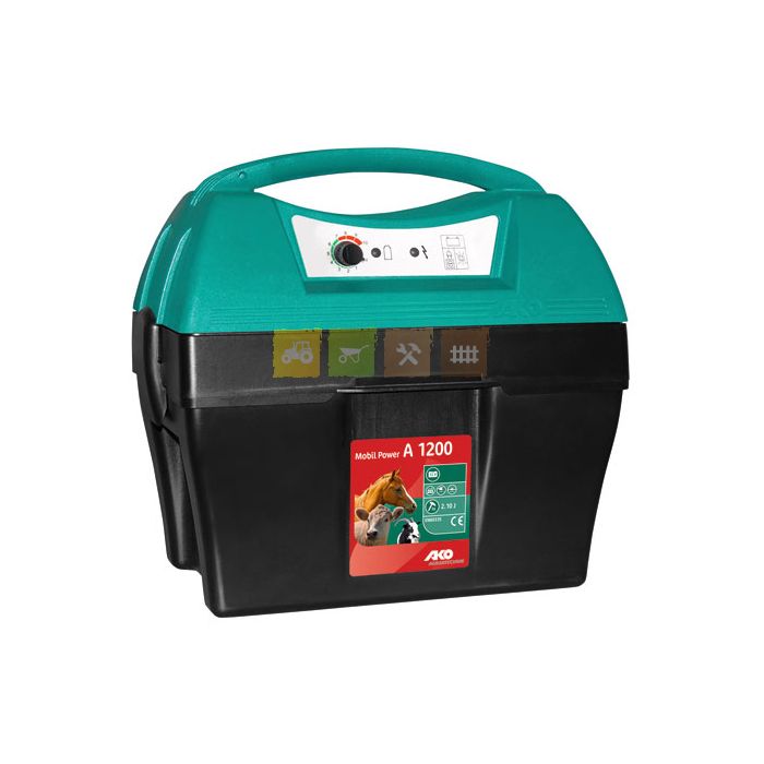 Poste AKO Mobil Power AD2000 Digital de clôture électrique 9/12 volts très puissant, utilisation pour des clôtures longues avec la végétation dense en croissance et pour des animaux robustes.