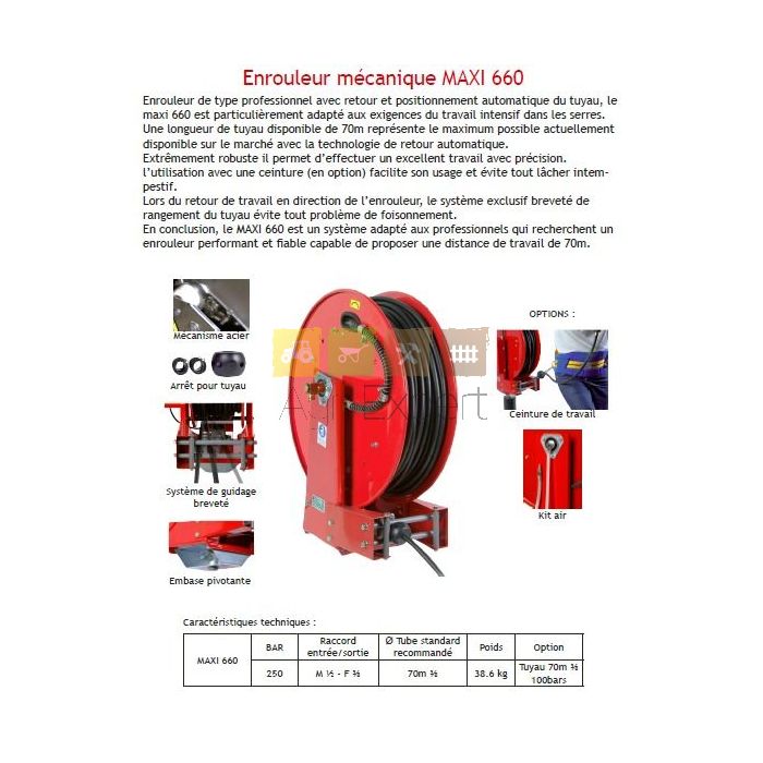 Peut contenir 70m de tuyau diamètre 3/8.