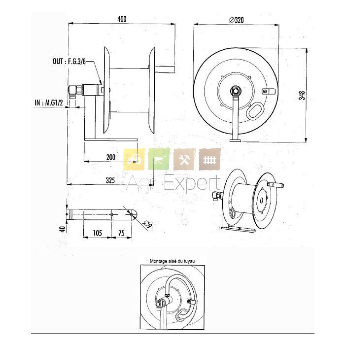 Enrouleur Magnum Mini 250 bars. Livré sans tuyau. Raccord entrée sortie M1/2 F3/8 non livré - Tuyau recommandé 20m diamètre 3/8.