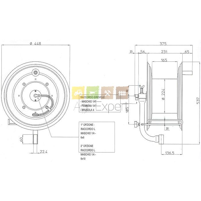 Enrouleur multidirectionnel pour tuyaux diamètre 6X8