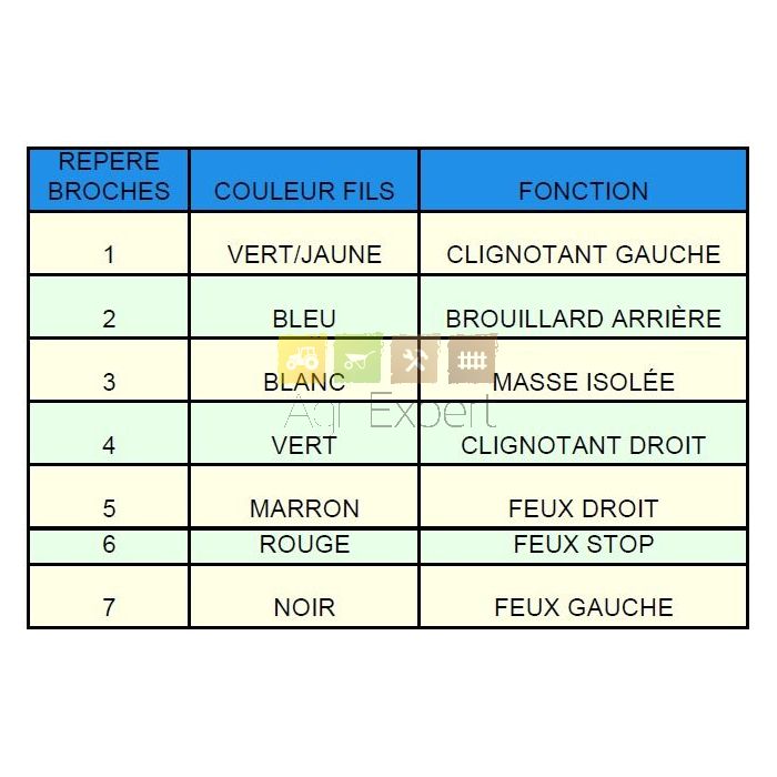 Fiche normalisée 12 volts 7 plots en plastique : - 7 plots laiton