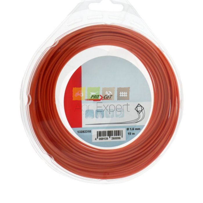 Fil de coupe Pro-Cut en nylon copolymère de 1,6 mm, profil carré, rouleau de 15 mètres.