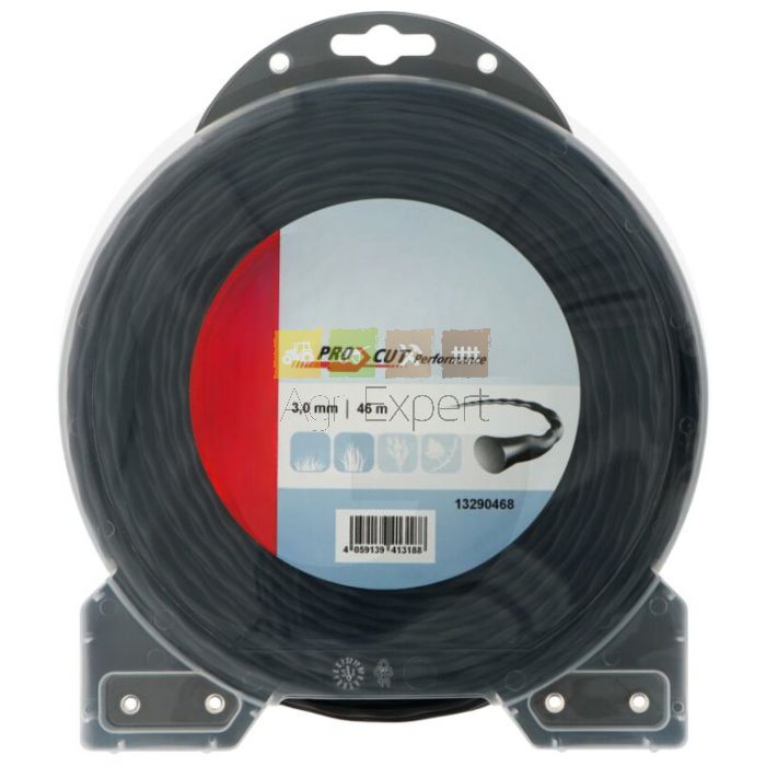 Fil de coupe Pro-Cut en nylon copolymère de 3,0 mm, profil spiralé, rouleau de 46 mètres.