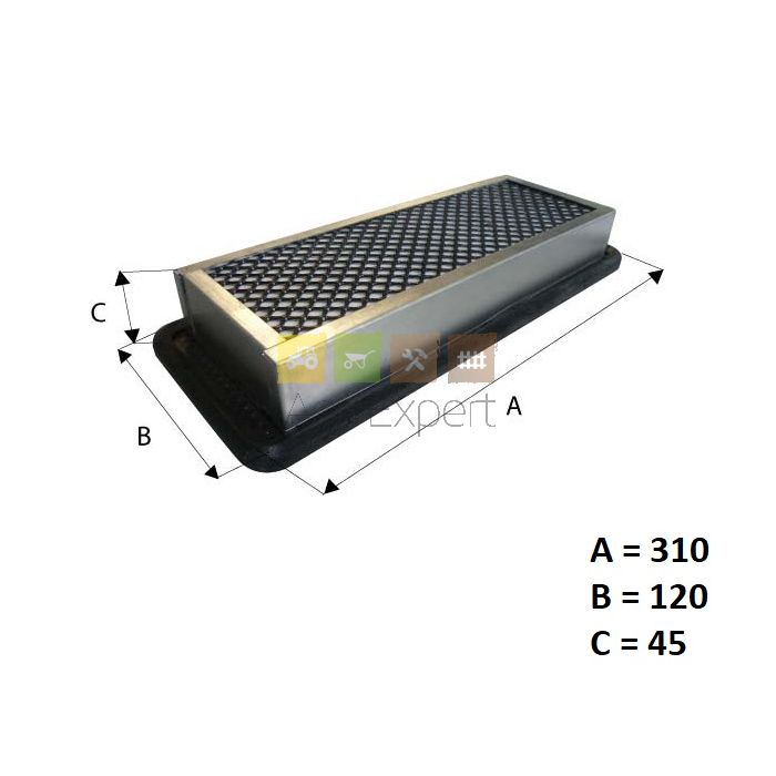 Filtre de cabine à Charbon actif combiné 310 x 120x 45 mm, Rendement H13 + gaz nocifs Rendement min. 99.95%, pour tracteur Kubota ME 5700 DTHQ, ME 5700 DTH, ME 5700 DTN, M 8560 DTH, M 8560 DTHQ, M 9540 DTH, M 9540 DTHL, M 9540 DTHQ, M 9540 DTL, M 9540 DTQ, M 9960 DTHQ, M 9960 DTH, M 7-131, M 7-151, M 7-151 PREMIUM KVT, M 7-171