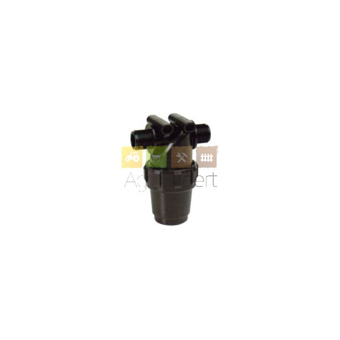Filtre de tronçon 3/4M inox 50 Mesh. Entrée / sortie 3/4 mâle. Série 322-2. Dimensions du schéma : H = 22 mm, F = mâle 3/4, L = 104mm.