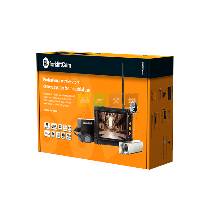 Forklift Cam est un système de caméra radio numérique mobile pour tous les types de chariots élévateurs et a été développé pour rendre les processus de travail plus rapides, plus sûrs et plus confortables. Les images vidéo sont transmises de la caméra au moniteur 7" fourni avec l'appareil d'une manière très nette, en haute résolution, sans fil et sans interférences, offrant une vue parfaite des emplacement de rack, palettes. La caméra est équipée d'un éclairage LED, la zone de gros plan est bien éclairée et offre une vue parfaire sur les fourche. La caméra est étanche (IPK69K). Le support magnétique de et le banc d'alimentation ont une force de maintien de 40 kg, assurant un maintien sûr sur le camion. L'Installation facile et rapide grâce à ses puissants aimants et à sa batterie longue durée. Un système sans fil très fiable