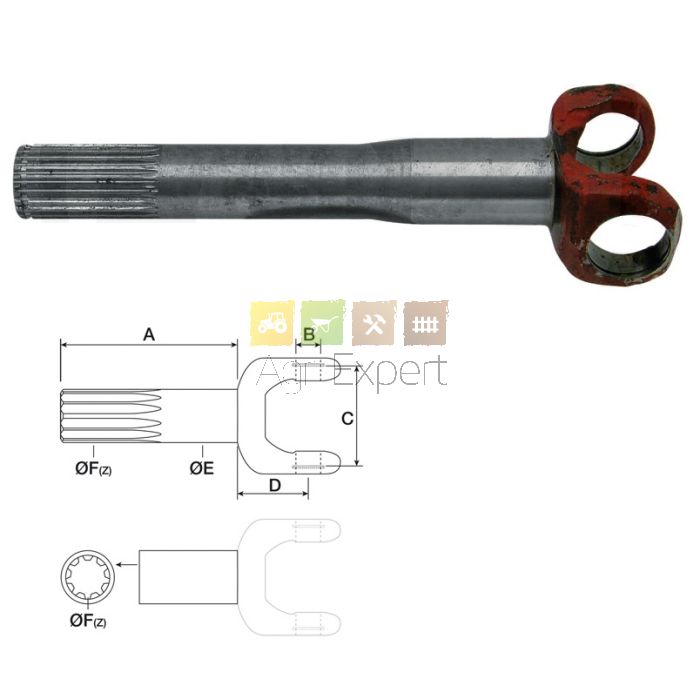 Fourche extérieur pont avant ZF APL3054 tracteur Case IH 1255 XL, 1455 XL, Deutz-Fahr DX 140, DX 145, DX 160, DX 7.10, John-Deere 4050, 4250, 4350, 4450