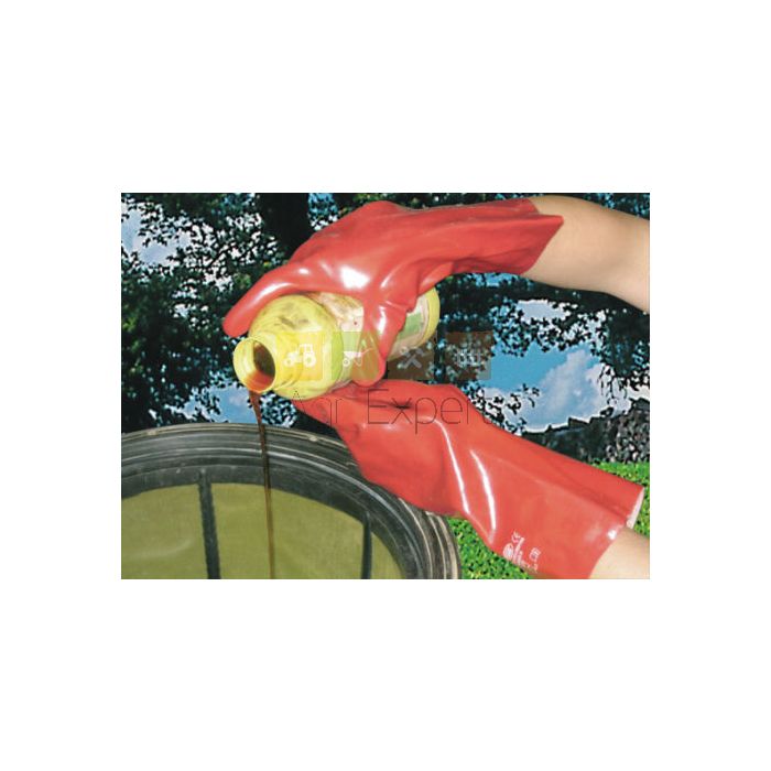 Gants de protection étanche en PVC brun-rouge avec doublure interlock coton.