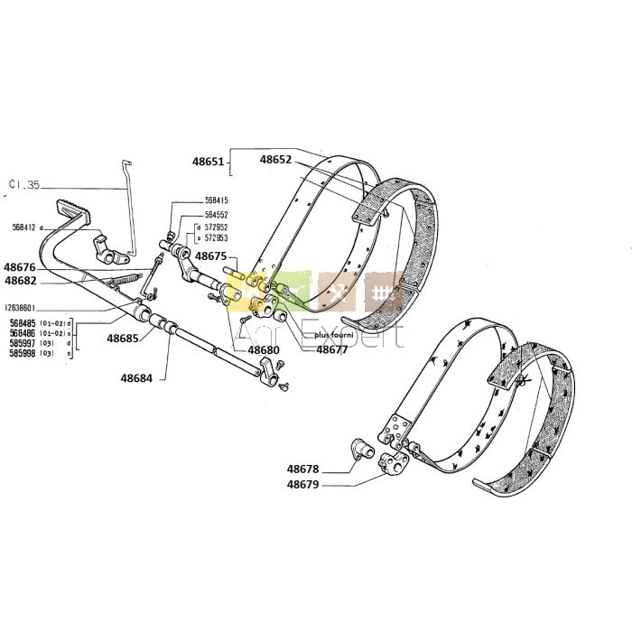 Garniture de sangle de frein tracteur Fiat, Agrifull, Carraro 311C, 332C, 351C, 352C, 400C, 411C, 411CL, 451C, 455C, 505C, 555C, 605C, Same FALCON C, MINITAURUS 60C, TAURUS C