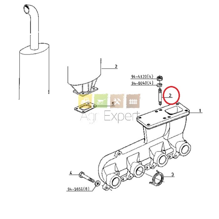 Goujon de pot d'échappement moteur John-Deere 3029D, 4039D, 4045D tracteur Renault Claas Cérès 65, 70, 75X, 85X, 95X, 310A, 320X, 325X, 330X, 335X, 340X, 345X, Ergos 85, 90, 100, 105