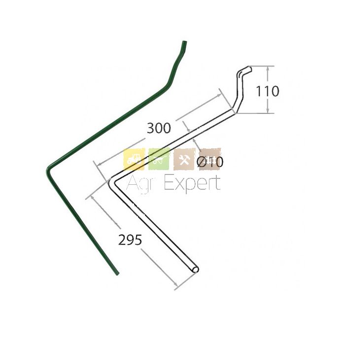 Dents de herse gauche type II hauteur 300/295 - Ø 10 mm