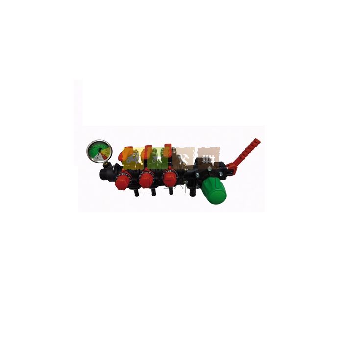Vanne général manuel entrée diamètre 19 mm + vanne régulatrice mécanique avec retour cuve diamètre 25 mm , 1 retour compensé diamètre 25 mm + 3 vannes de section avec raccord diamètre 13 mm + filtre 160 l /min.