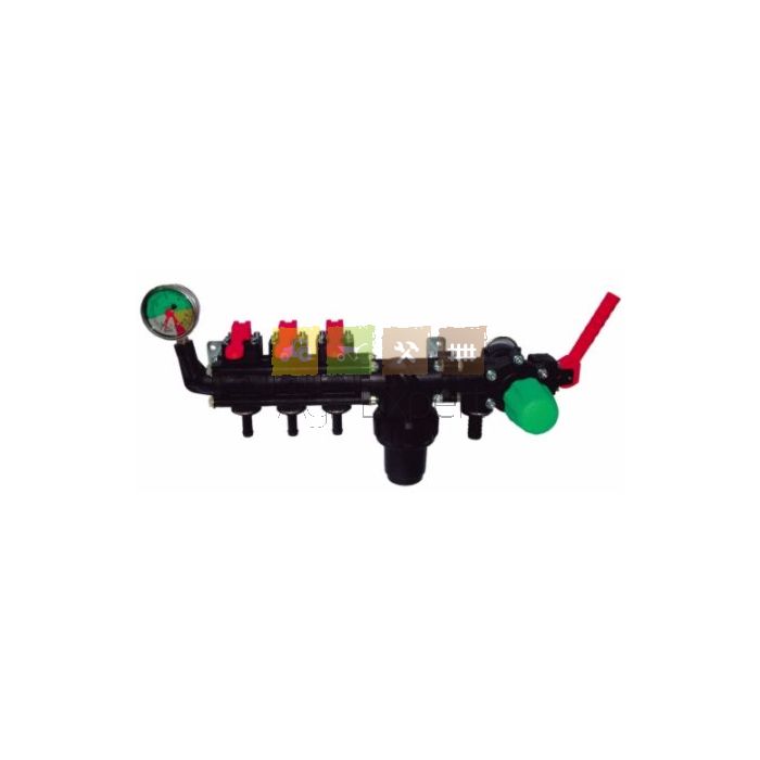 Vanne général manuel entrée diamètre 19 mm + vanne régulatrice mécanique avec retour cuve diamètre 25 mm + 3 vannes de section avec raccord diamètre 13 mm + filtre 160 l /min.